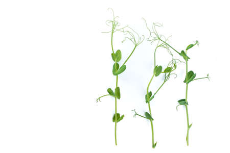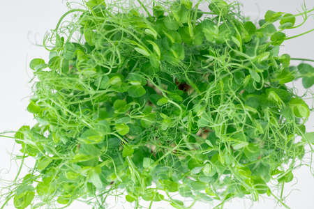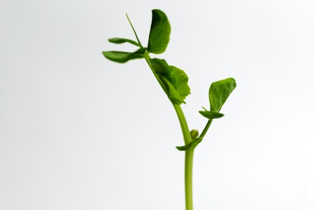 sprouts of microgreen peas on a white background. Selective focus.