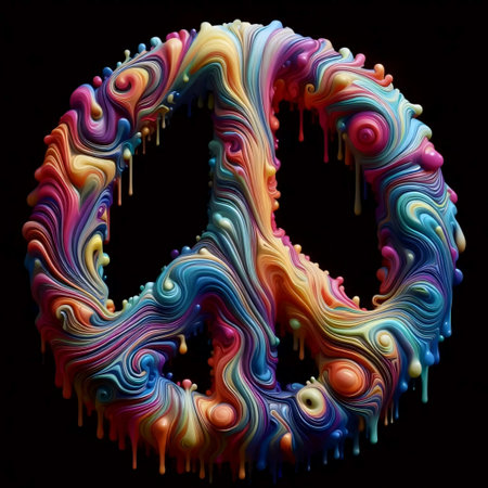 Liquid peace sign morphing into rainbow waves, Ai generated image
