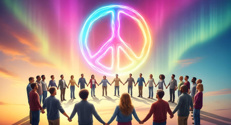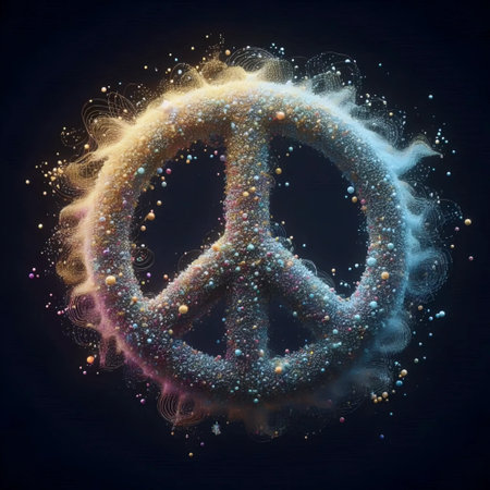 Animated peace sign with floating particles, Ai generated image