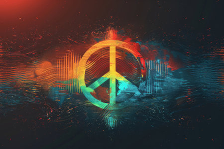 Peace sign appearing on colorful grunge background