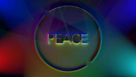 Symbol Peace 3d in rainbow colors on solid rainbow colors background on colorful background