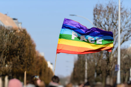 Assisi Italy April 24 2022: March for peace against all war that starts from Perugia and arrives in Assisi