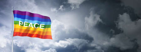 Rainbow peace flag on a cloudy sky, three dimensional render