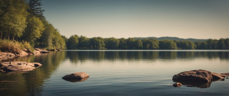 AI Generated. Tranquil lakeside serenity under a clear sky