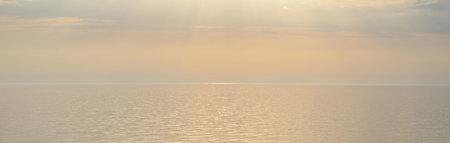 Peaceful seascape with a soft pastel sunset over calm ocean waters, creating a tranquil and dreamy atmosphere.1