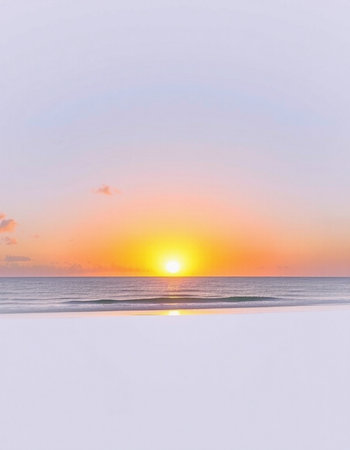 A tranquil ocean scene captures the serene beauty of sunrise, featuring soft pastel colors and gentle waves reflecting the calming morning light.