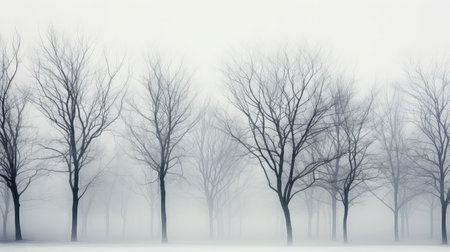 A serene winter scene featuring a set of bare trees illustrated in a monochromatic style, set against a clean white background, evoking a sense of calmness and winter wonder, ideal for use in graphic design, print, and digital media.