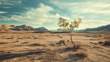 AI Generated. A solitary bush in the vast desert landscape