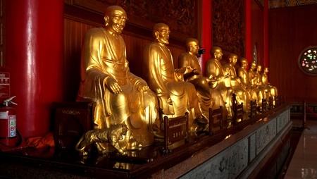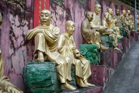 Impressive golden statues at Ten Thousand Buddhas Monastery in Sha Tin, Hong Kong, China.