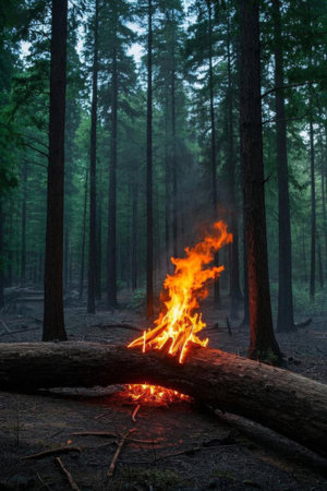 Bonfire scene burning in the forest
