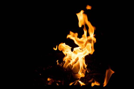 Flames of a campfire on a black background, close-up