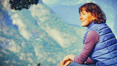 pretty woman outdoors rocky mountains charm close-up travel