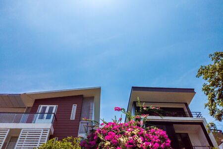 New Home Under Construction with blue sky, Property and estate concept with copy space for text, banner.