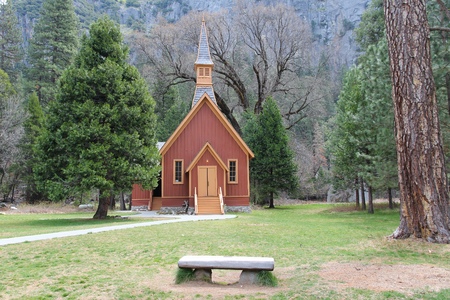 Yosemite National Park, California, United States - Yosemite Valley Chapel, small wooden church.