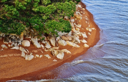 Landscape with lake shore and red sand