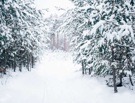 Beautiful winter landscape of pine trees covered with snow in the forest