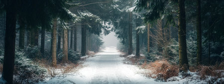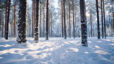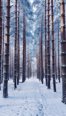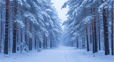 A breathtaking winter scene of a snow-covered forest path. Serene and magical