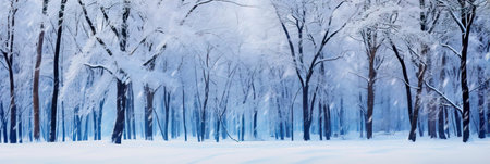 Birch forest in winter with snow-covered trees in tranquil serene atmosphere