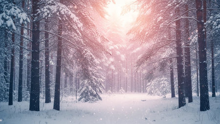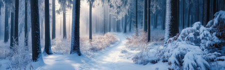 Serene and magical atmosphere of a winter forest morning