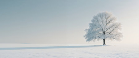 AI Generated. A lone frosted tree stands in a snow covered winter landscape