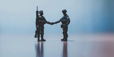 A group of military men are standing in formation next to each other, displaying their teamwork and unity, A SWAT team strategizing their next move in a high-risk hostage situation, AI Generated