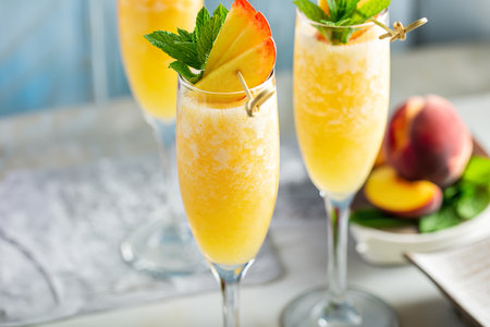 Sweet Bubbly Peach Bellini Mimosa with Champagne