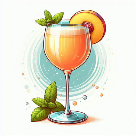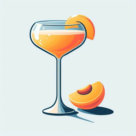 Bellini cocktail alcohol peach drink. Used as a poster, template, flyer, banner, menu. Vector flat design. Landing page with text.