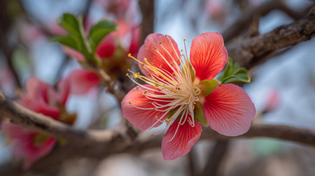 Stunning Close-Up of a Delicate Peach Blossom on a Tree Branch