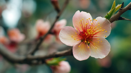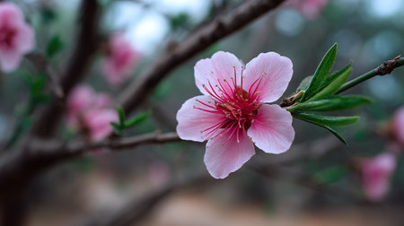 Delicate Peach Blossom in Springtime Garden, Embracing Natural Beauty
