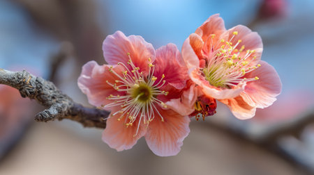 Delicate Pink Plum Blossoms Radiating Springtime Beauty in Macro Shot