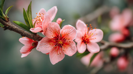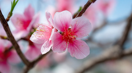 Peach Blossoms in Spring: Delicate Beauty of Floral Bloom Close Up