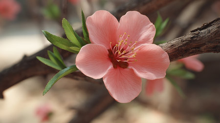 Delicate Peach Blossom Flourishing on a Branch in Early Spring