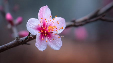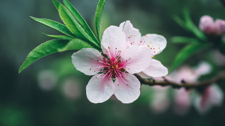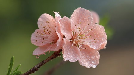 Delicate Pink Blossom with Dewdrops, Capturing the Essence of Spring