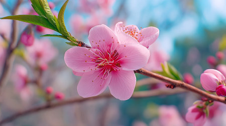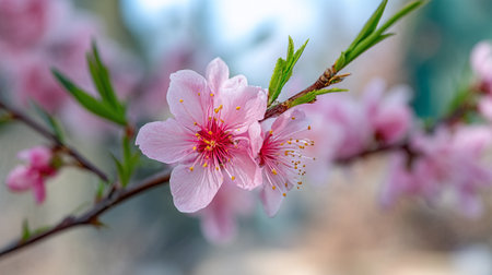 Peach Blossom Delight: Spring Flowers Blooming on a Branch