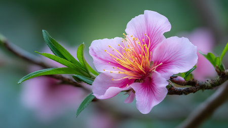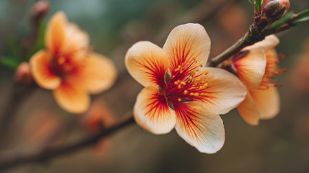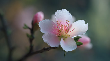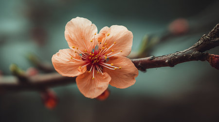 A Captivating Peach Blossom in Delicate Detail and Soft Light