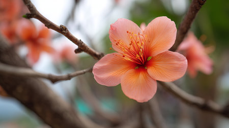 AI Generated. Pink and Orange Blossom Branch with Blurred Background