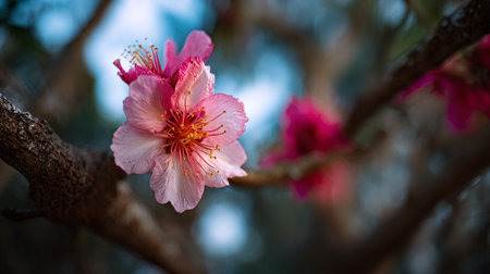Dewy Pink Cherry Blossom Radiates Delicate Beauty on a Branch