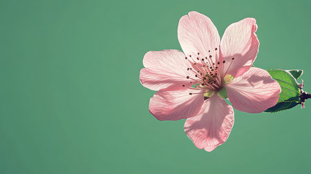 A stunning isolated cherry blossom featuring delicate pink petals against a green background, perfect for capturing the essence of spring and nature's beauty.