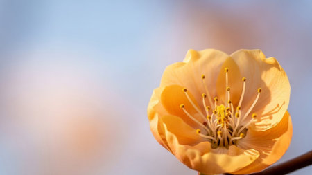 Captivating apricot blossom revealing pistil and stamens on a tree branch