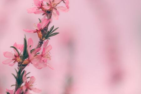 Delicate Pink Peach Blossom in Spring Season Macro View