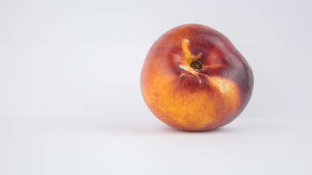 Half of peach on a white background close up