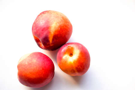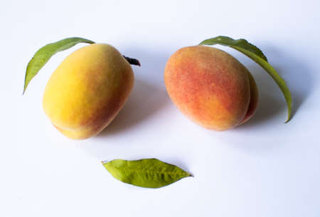 Delicious juicy red and yellow peaches on a white background