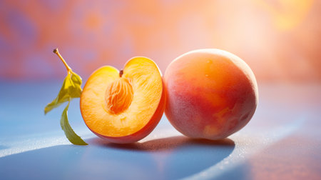 Photo of Apricot fruit half against a colorful abstract background
