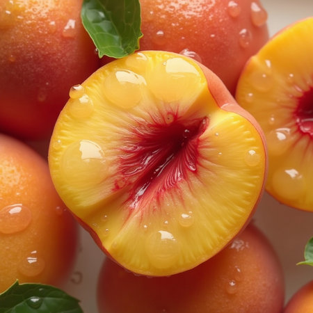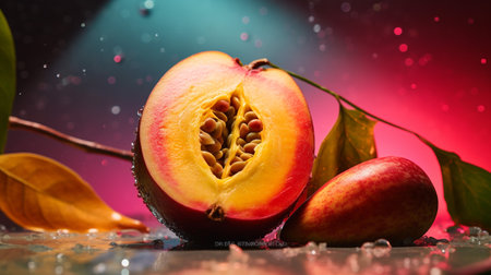 AI Generated. Juicy peach sliced to reveal vibrant inner flesh