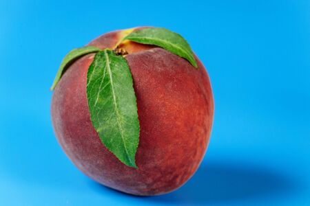 Ripe peach on blue background