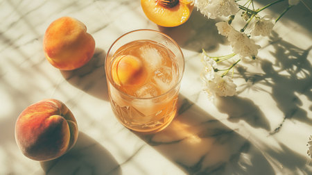 Refreshing Peach Tea on Minimal Tabletop AI Generated