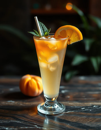 delicious and cold peach cocktail