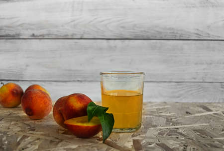 Fermented lemonade made from peaches, sugar and spices, copyspace