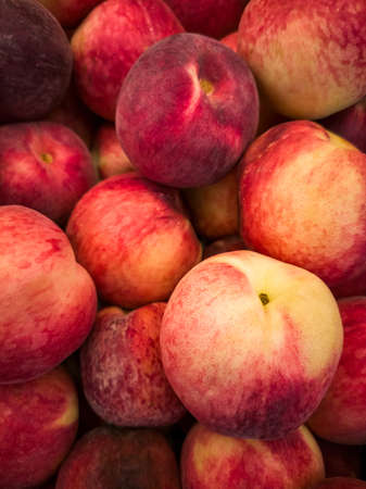 background texture of fruit nectarines. Sale of ripe fruit in the store retail
