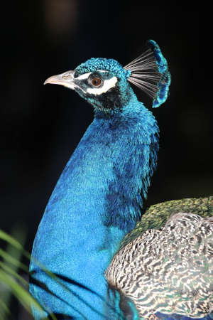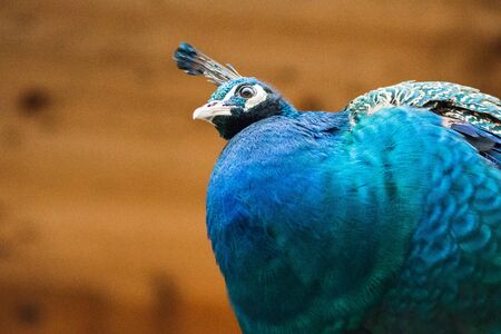Gorgeous portrait of a blue peacock with silky blue feathers